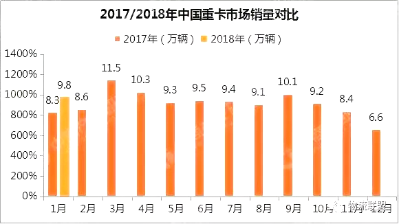 據(jù)統(tǒng)計(jì)數(shù)據(jù)顯示,自2016年10月開始延續(xù)至2017年10月,國(guó)內(nèi)重卡市場(chǎng)連續(xù)13個(gè)月爆發(fā)式增長(zhǎng)!2017年全年,國(guó)內(nèi)重型貨車產(chǎn)量為114.97萬輛,同比增長(zhǎng)55.07%,銷量為111.69萬輛,同比增長(zhǎng)52.38%。而18年1月重卡市場(chǎng)的“開門紅”除了同環(huán)比雙雙增長(zhǎng)以外,同時(shí)也打破了去年1月銷量8.3萬輛的紀(jì)錄。